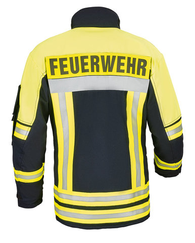 • abnehmbares Rückenschild gelb mit Aufschrift „FEUERWEHR“ oder
